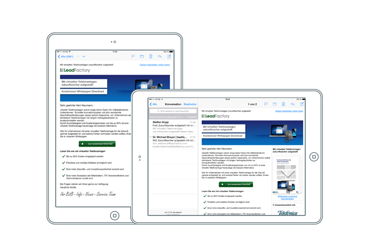 Neben der Definition der gewünschten Lead-Kriterien und Zielgruppen, setzen wir auf effiziente Ansprache-Formate, die wir devicespezifisch optimieren.